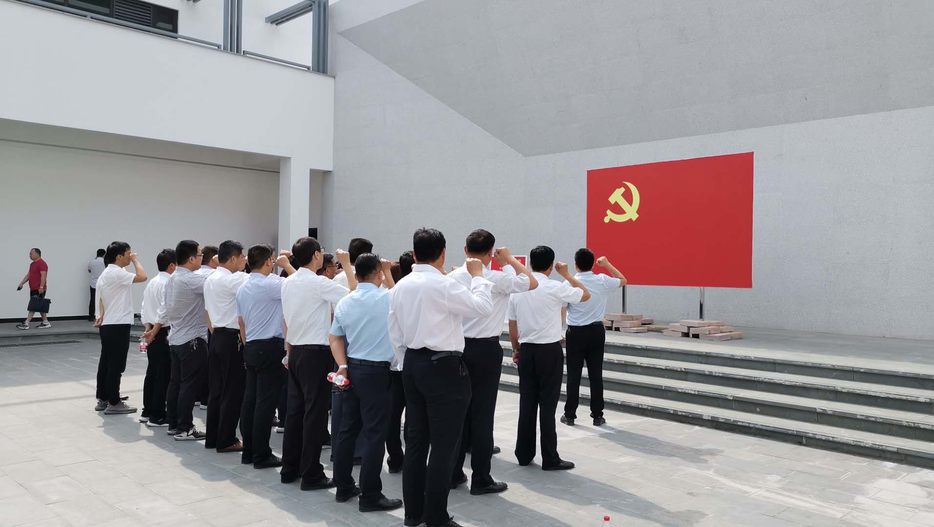 現(xiàn)場參觀學習結(jié)束后,全體黨員面對鮮紅的黨旗,集體宣誓,重溫入黨誓詞,堅定理想信念,提升思想境界。
