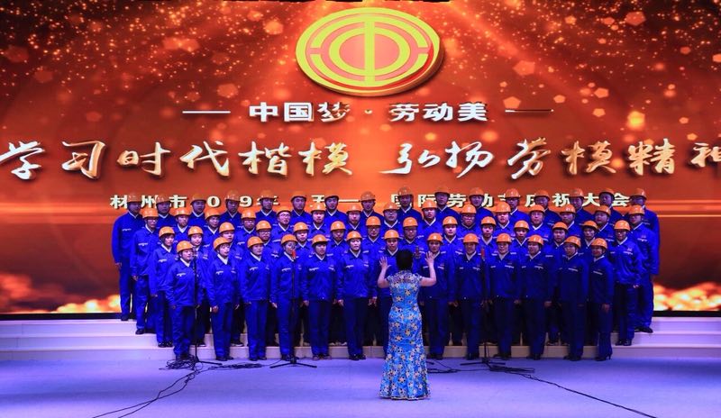 弘揚(yáng)勞模精神,唱響勞動(dòng)贊歌。在“五一”國際勞動(dòng)節(jié)到來之際,4月26日上午,林州市召開“五一”國際勞動(dòng)節(jié)慶祝大會(huì)暨百場演出送基層啟動(dòng)儀式,大會(huì)在我公司職工大合唱《沒有共產(chǎn)黨就沒有新中國》和《咱們工人有力量》中拉開帷幕。合唱聲音宏厚響亮,鏗鏘有力,唱出了我們工人階級(jí)的力量和氣勢,贏得了觀眾陣陣掌聲。