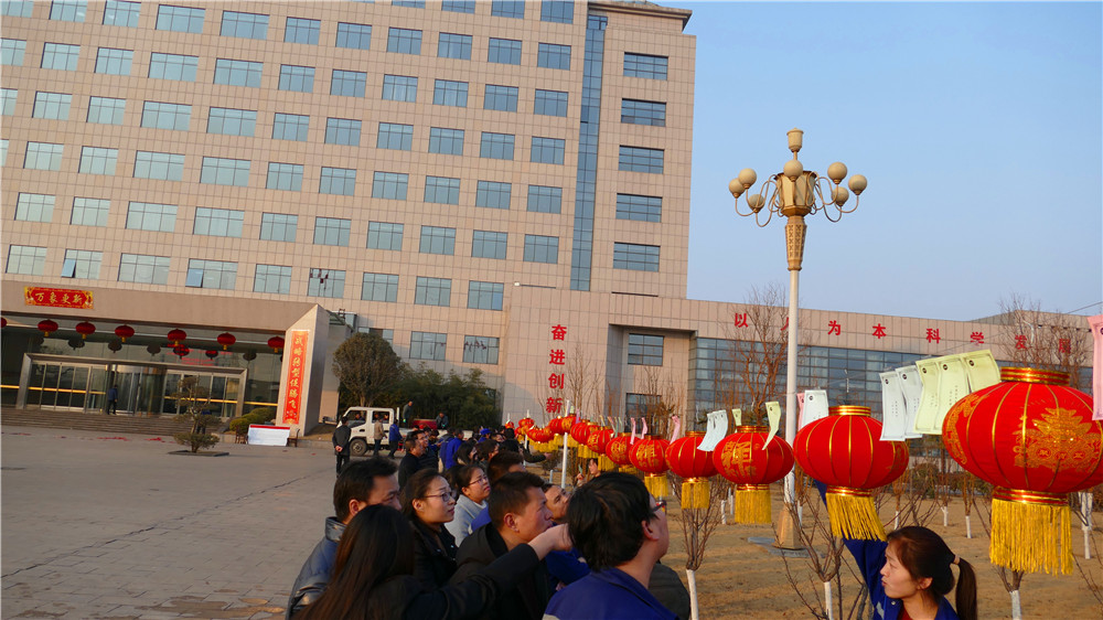 在游園結(jié)束之余,公司工會在辦公樓前廣場組織了猜燈謎活動。謎面科學而又通俗,有猜字、有成語、有人名、有地名,集趣味性、知識性于一體?;顒蝇F(xiàn)場,員工們有的獨自思考,有的三五成群共同探討,紛紛發(fā)表自己的見解,猜燈謎現(xiàn)場熱情高漲。公司領導們也專門抽出時間與大家一起參與互動。經(jīng)過大家冥思苦想,一條條謎底被紛紛揭下來,大家分別拿著各自的獎品,笑逐顏開。